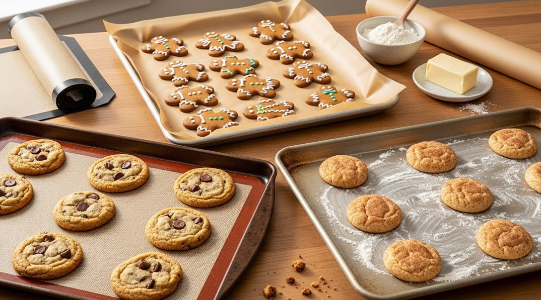 For cookies and delicate pastries, silicone mats or non stick liners offer clean edges.